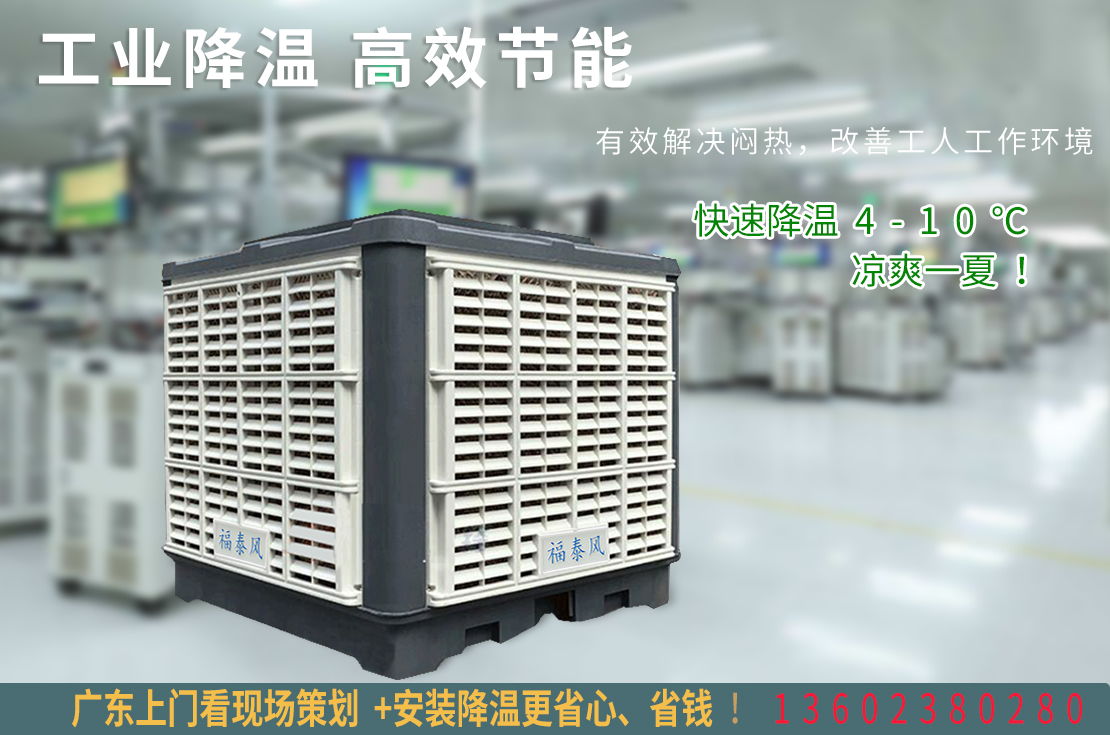 福泰環?照{降溫原理、作用及應用范圍: 福泰蒸發式水冷環?照{工作原理:利用濕簾作為降溫介質,水從濕簾的頂部沿濕簾的波紋表面均勻的流下,使濕簾從上到下均勻的濕潤,風機抽風時,產生壓力,空氣流經多孔濕潤濕簾表面時,空氣中大量干濕球蒸發到達制冷的效果從而把新鮮的涼風送到室內。 福泰環?照{性能穩定在越炎熱的天氣下降溫的效果越好。適用于開敞式及半開敞式環境,能夠直接輸送自然風及輸送降溫后的涼風。室外新鮮空氣經福泰蒸發式冷氣機過濾、降溫后向室內源源不斷的大量輸送,將室內帶有異味、粉塵和混濁悶熱的空氣排出室外,同時兼顧換氣降溫及增加空氣含氧量等多種效果。 特別適用于高溫及人群密集場所(如:工廠車間、飯堂宿舍、寫字樓、網吧、養殖場、溫室、商場、候車室等)。