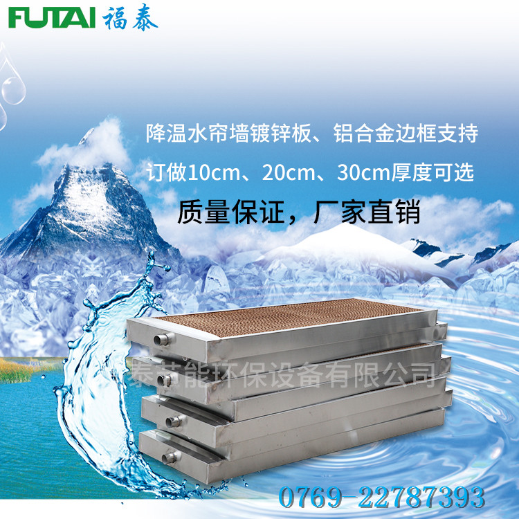 7090濕簾墻、6090濕簾墻定制邊框可以用鋁合金,不銹鋼更加客戶需求訂做厚度,尺寸以及各種規格 水簾風機降溫效果好可以達到4~10℃,改善車間高溫悶熱異味的問題,能給車間通風、換氣降溫的作用! 每一個客戶都是量身定制方案,福泰秉承讓客戶少花錢做到一個舒適的降溫效果!