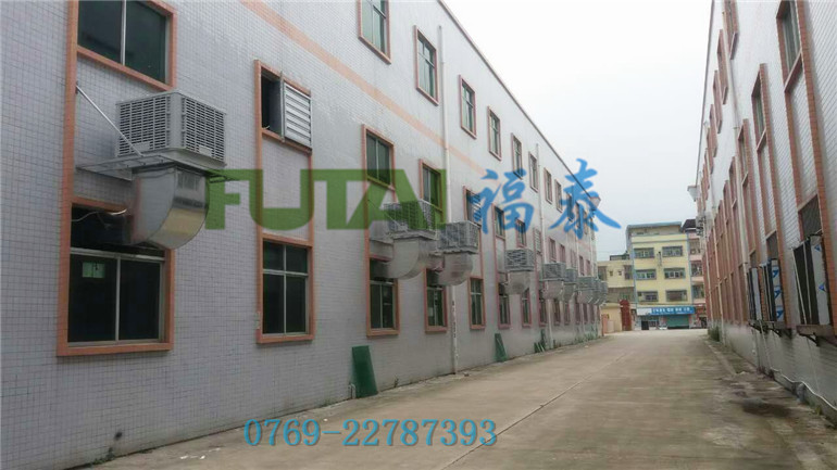 “福泰”蒸發式降溫換氣機組,根據“水蒸發吸收熱量,蒸發面積影響蒸發效率”這一自然物理現象,使空氣經過實際換熱面積為表面積多倍的蒸發濕簾,將大量的熱量吸收,從而達到降溫的目的。