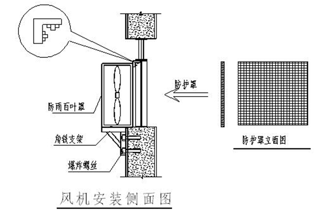 風機水簾具體安裝步驟如下: 第一步,首先將要裝風機或水簾的窗拆下,并把窗內框清理干凈。 第二步,按下圖裝上風機或水簾,安裝前,先用角鋼焊好托架,風機和水簾要確保水平安裝,固定螺絲一定要堅固可靠,檢查完電源及安裝的方向一起正常就可以使用啦!