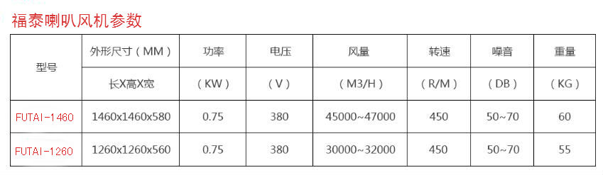 福泰喇叭風機適用范圍: