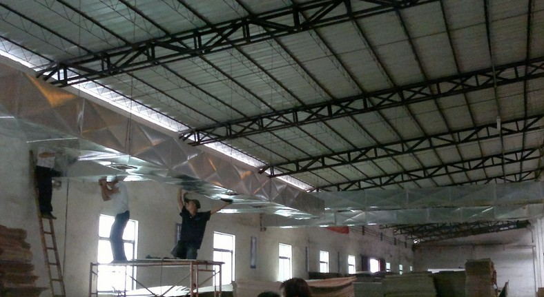 大型高溫廠房降溫通風解決方案,鋼結構車間降溫,鐵皮房降溫 一般這種類型的廠房都是比較高大的鋼結構的車間比較大面積所以車間在安裝傳統(tǒng)空調時候除了考慮高費用外還要考慮通過問題,因為鋼結構車間一般夏天導熱讓車間的溫度一升在升,如果你沒有及時送風和排風以及降溫的話車間就會越來越熱和悶的情況出現(xiàn)。這時候車間工作人員精神狀態(tài)也不會好這就是高溫帶來的連鎖反應,產(chǎn)量自然也提高不了。