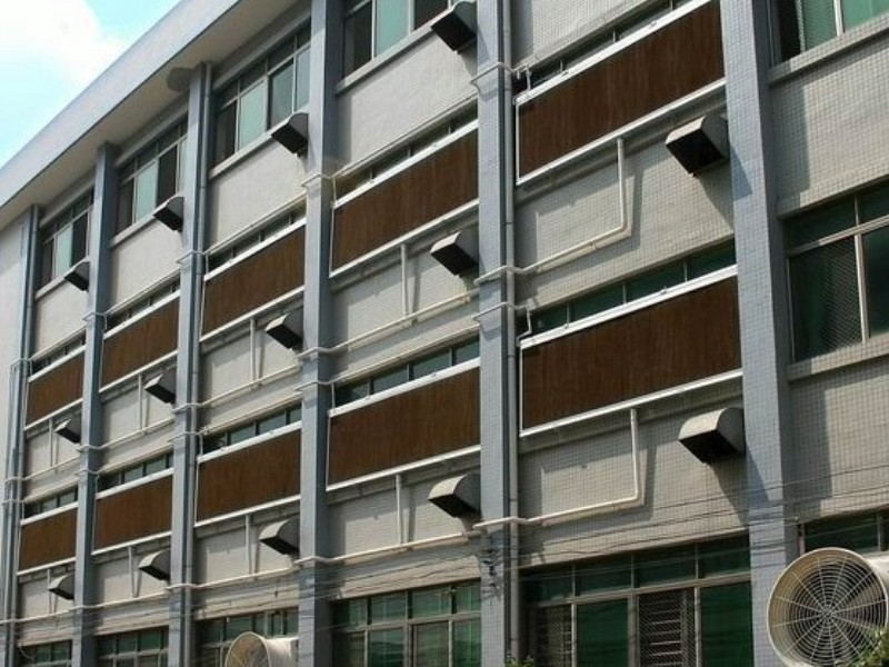 2.降溫水簾系統,對車間外空氣二次制冷進入車間降溫。車間安裝負壓風機的對面或者側面墻壁的窗戶上安裝降溫水簾系統,把進入車間內的補充空氣經過降溫水簾二次降溫,變成溫度更低的空氣被負壓風機強行引入到車間內降溫,此方法與負壓風機配合使用降溫效果好,需要注意的是水簾降溫系統空氣的量和速度要足夠補充車間內高溫悶熱空氣排出的量和速度,而且要做好車間的密封,盡量保證進入車間的空氣經過降溫水簾系統。