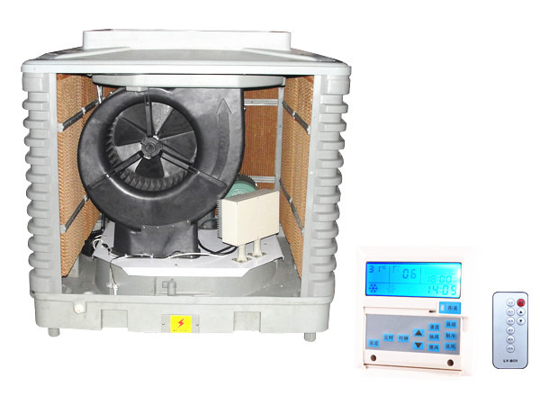 環(huán)保空調(diào)一種可以產(chǎn)生大量冷風(fēng)的一種設(shè)備,該設(shè)備的制冷源是水,說到這里可能很多人都開始懷疑一個(gè)問題,那就是夏天的水本身都不涼,用水怎么降溫?其實(shí)原理很簡(jiǎn)單,在冷風(fēng)機(jī)的四邊安裝有4片10cm厚的紙芯,在紙芯上布滿了密密麻麻的小孔,設(shè)備的底部是一個(gè)可以容納30升水的底座,里面有一臺(tái)水泵,當(dāng)水泵工作時(shí),將設(shè)備底部的水抽出,從紙芯的頂部均勻的噴灑,就像下雨一樣向紙芯源源不斷的供應(yīng)水,當(dāng)設(shè)備內(nèi)的風(fēng)機(jī)運(yùn)作時(shí)開始抽風(fēng),而外面的熱風(fēng)會(huì)源源不斷的從紙芯處進(jìn)入機(jī)箱,當(dāng)熱風(fēng)經(jīng)過紙芯時(shí),產(chǎn)生過濾作用,含在風(fēng)里的雜質(zhì)會(huì)被紙芯過濾,在有水將吸附在紙芯上的雜質(zhì)沖洗下去。 當(dāng)外部35度的熱空氣經(jīng)過含有大量水分的紙芯時(shí),熱空氣瞬間吸收水分,變成和水一樣的溫度,而水的溫度因?yàn)樵谠丛床粩嗟难h(huán),散熱,因而水會(huì)變的特別的涼。這個(gè)時(shí)候再由風(fēng)機(jī)將降過溫的冷氣源源不斷的輸送到車間,冷風(fēng)進(jìn)入車間后,和車間內(nèi)部的熱空氣混合,冷氣吸收熱氣后會(huì)迅速通過對(duì)面敞開的門窗排出,以此不斷循環(huán),半個(gè)小時(shí)后車間里的熱氣會(huì)被完全吸收,并被冷氣所控制,最終達(dá)到降溫目的。所以說冷風(fēng)機(jī)的優(yōu)點(diǎn)是不限制廠房密封性,可以打開門窗,單臺(tái)設(shè)備可以控制130平方,用電量每小時(shí)只需要一度電,即可將室內(nèi)溫度降低到30度以下。 過濾網(wǎng)過濾粉塵保持進(jìn)來空氣新鮮、水簾塊降溫核心材質(zhì),球閥控制水位的,集水盤環(huán)保空調(diào)底盤儲(chǔ)水,環(huán)保空調(diào)外殼材質(zhì)原料生產(chǎn),水泵讓水在冷風(fēng)機(jī)里面循環(huán)供水,全銅線圈材質(zhì)電機(jī)是核心部件,控制遙控器便于調(diào)節(jié)控制器(清洗、通風(fēng)、制冷等功能),每一個(gè)部件都有它的作用,壞了一定要更換不讓制冷效果大打折扣,而且要定期維護(hù)保養(yǎng)這樣使用時(shí)間更長(zhǎng)。降溫效果也更好。今天的分享不知道你是否對(duì)它了解更多了。