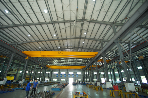 工業大風扇-廣東工業大風扇-工業大風扇安裝 工業大風扇廣泛運用于用于工業廠房、物流倉儲、候車室、展覽館、體育館、商超等等高大空間通風降溫,利用直徑7.2m的超大,機翼形狀截面扇葉,推射大量氣流到地面,在地面形成一定高度的氣流層水平運動,從而促成了整體空氣循環。工業大風扇技術是專門為節能降耗、改善工作環境舒適度而開發的一系列產品。眾所周知,涼爽舒適的效果并不只有通過制冷降溫來實現;風扇吹拂的面積也取決于風扇的直徑,與風扇的轉速沒有絲毫關系,而低轉速大直徑的工業大風扇這是結合了這些特點,功率0.88--1.3kw, 扇葉轉速只有5-60r/min,“產生的風速約為 2-3 米/秒,完全是根據氣流掠過人體皮膚產生涼爽感覺。