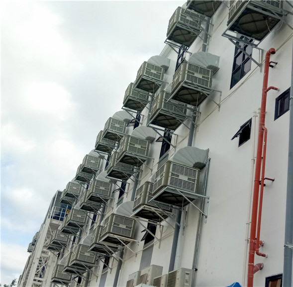 環保空調工程-東莞福泰 炎炎夏日,高溫車間選購降溫通風空調,需要滿足以下幾個要素:首先就是要解決通風問題,因為室內通風,能加速室內室外空氣的流通、循環交換,達到換氣效果,同時把室內一部分高溫空氣排出室外。其次就是把溫度降下來,讓室內工作人員感受到真正的涼爽和舒適。由此可見,高溫車間降溫通風,要兼具通風、換氣、降溫三要素才行。了解了高溫車間降溫通風的幾個要素,下面就知道選擇適合的空調了。現在工廠車間大部分都是采用蒸發式冷氣機進行夏日降溫。它又稱為環保空調,工業冷風機,水冷空調等。有時也還會配加負壓風機、工業大風扇等降溫產品一起,進行綜合的整體降溫,或定點的崗位降溫。