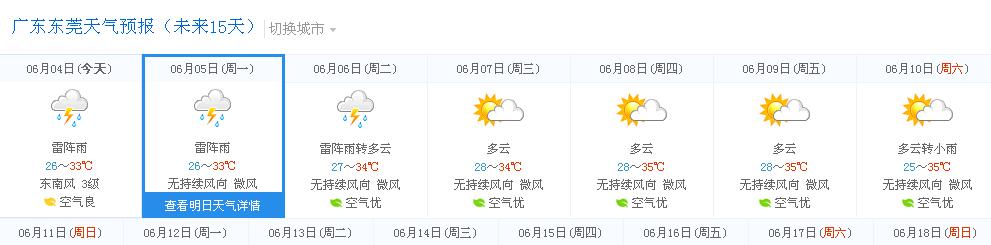 根據(jù)市氣象臺預(yù)報:預(yù)計我市6月4日到5日受副高邊緣不穩(wěn)定氣流影響,高溫多云,有陣雨或雷陣雨,局部地區(qū)最高溫度將達35.8°C;6日多云,最高溫超35°C以上,局部有陣雨或雷陣雨;展望7日起受副熱帶高壓控制,天氣將變得悶熱,以多云天氣為主,偶有短時陣雨。