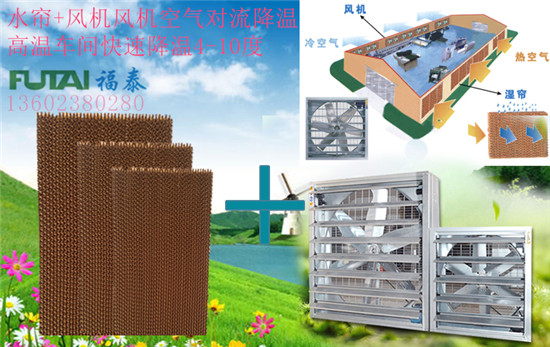 策略三是:鐵皮房和鋼結構的車間想快速降溫用負壓濕簾墻+風機做空氣對流降溫,水簾風機降溫效果也是比較明顯的。特種紙制蜂窩結構材料由于水簾紙蜂窩密度讓水蒸發的面積簡介的放大了N多倍看似一片水簾紙卻能讓整個車間像進入了小時候地窖一樣的涼爽。當然它的前提必須要有風機的大量抽風風壓經過水簾后經過車間是涼爽的,簡單的理解就是水吸收空氣中的干濕球蒸發制冷的原理。