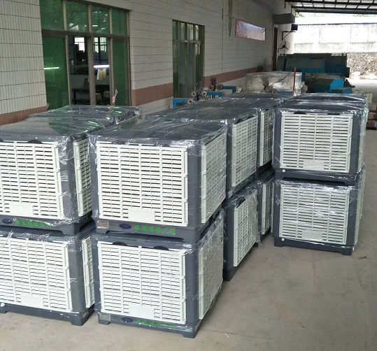 2、機(jī)械控制或液晶顯示,帶過(guò)壓/欠壓保護(hù)、缺相保護(hù)、缺水保護(hù)自動(dòng)/手動(dòng)清洗,自動(dòng)開關(guān)機(jī)功能; 3、銅芯電機(jī)、鑄鐵外殼,重量比大、啟動(dòng)和運(yùn)行穩(wěn)定可靠; 4、環(huán)保空調(diào)的三片低噪音尼龍風(fēng)葉適用于噪音要求較高場(chǎng)所,直接送風(fēng)15米。 5、全新料改性共聚PP工程塑料外殼(自主開模),防老化,使用壽命長(zhǎng); 6、蒸發(fā)水簾,降溫效果好、帶塑料包邊保護(hù)水簾,使用壽命長(zhǎng); 7、敞開式分水盤布水系統(tǒng),淋水均勻暢順。